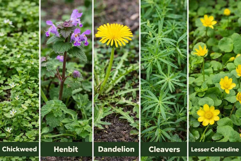 Early spring weeds are fast-growing plants that germinate in cool, moist soil before most garden plants begin active growth. Common early spring weeds include chickweed, henbit, dandelion, cleavers, and lesser celandine. The best control method is early removal, before roots strengthen or seeds develop.